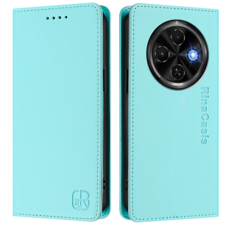 Funda de Cuero para Tecno Spark 30C Rc01 con Doble Pliegue y Succión Magnética Rfid (Verde Menta)