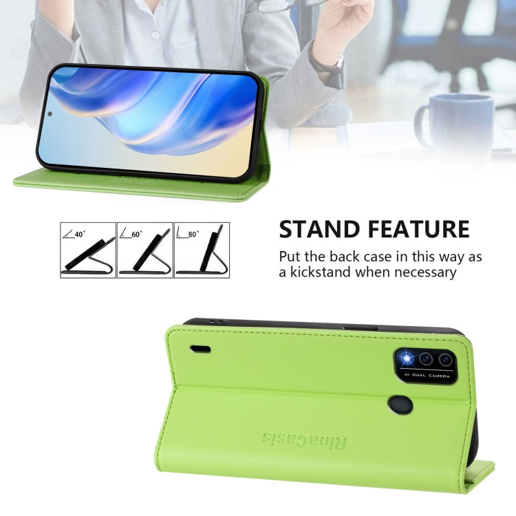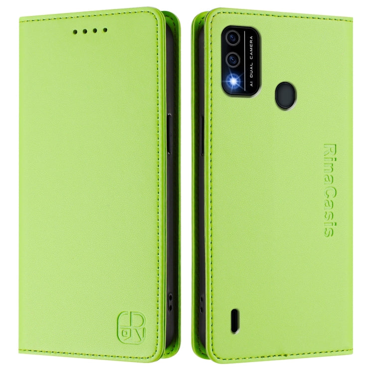 Funda de Cuero Rfid con Doble Pliegue y Succión Magnética para Teléfono Itel A48 Rc01 (Verde Hierba)