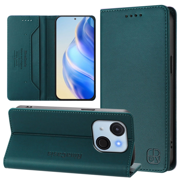Funda de Cuero Rfid para Teléfono Itel A50C Rc01 con Doble Pliegue y Succión Magnética (Verde Oscuro)