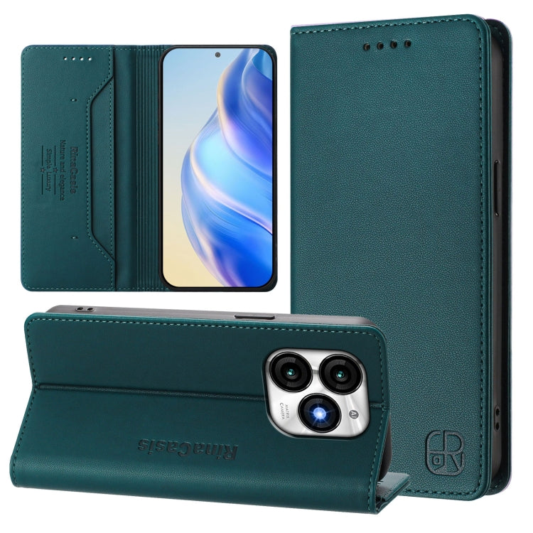 Funda de Cuero Rfid para Teléfono Itel A70 Rc01 con Doble Pliegue y Succión Magnética (Verde Oscuro)
