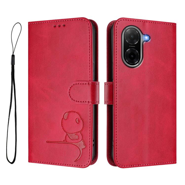 Funda de cuero RFID con estampado de panda y cordón para Redmi A5 4G (171,7 mm) / Poco C71 (rosa)