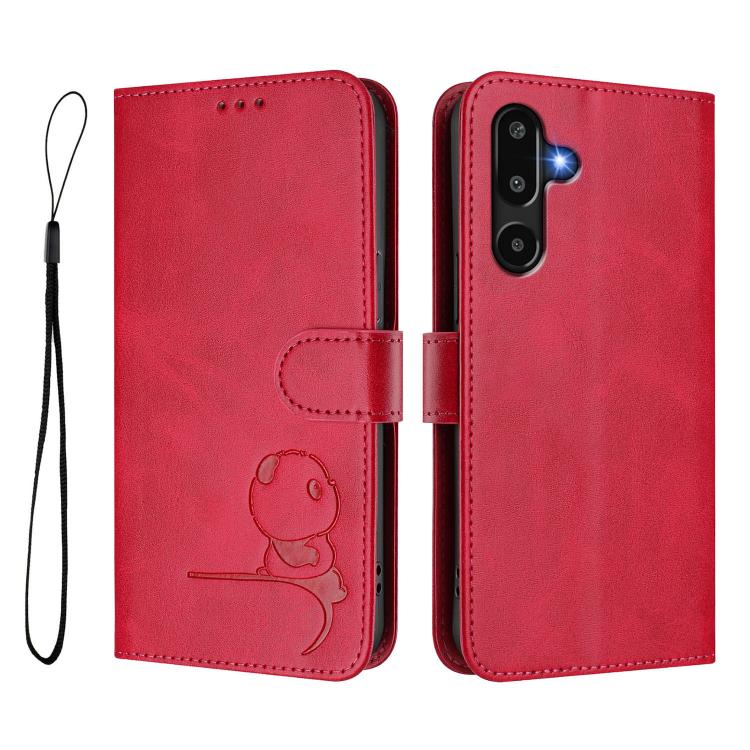Funda de cuero RFID con estampado de panda y cordón para Samsung Galaxy F16 5G / M16 5G (rosa)