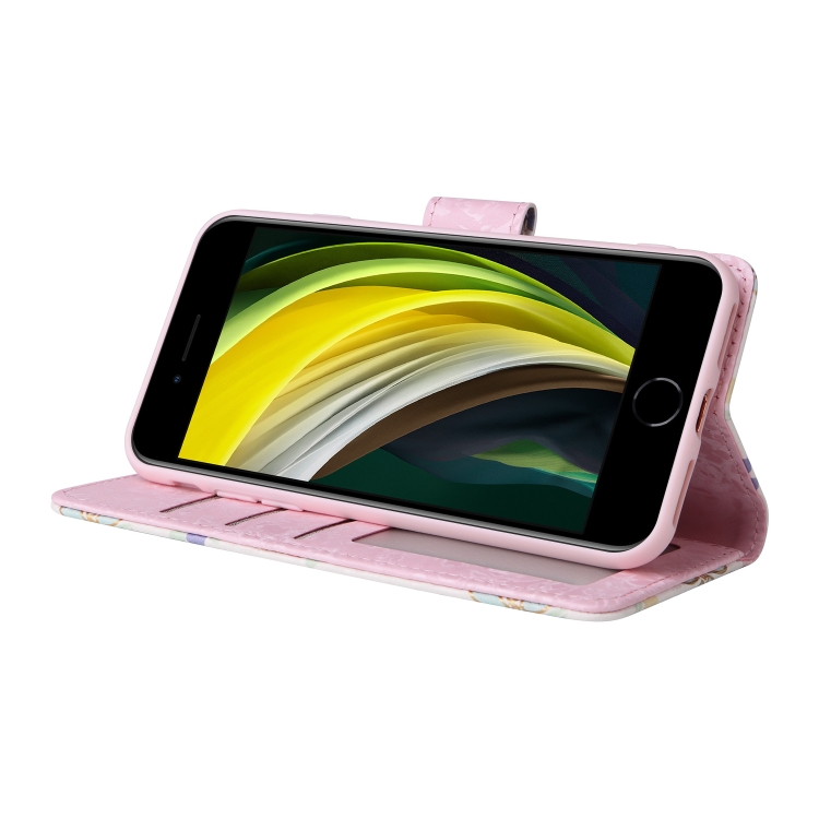 Funda de Cuero Rfid para iPhone Se 2022 / Se 2020 / 7 / 8 con Pintura Bronceadora (Flor Floreciente)