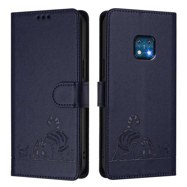 Funda de Cuero Rfid con Relieve de Gato y Rata para Nokia Xr20 con Cordón (Azul)