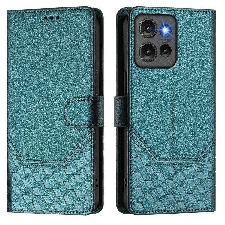 Funda de Cuero Rfid con Relieve de Panal Global para Motorola Edge 50 5G (Verde Pavo Real)