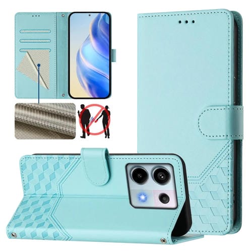 Funda de Cuero Rfid con Relieve de Panal Global para Redmi Note 13 Pro 5G (Verde Menta)