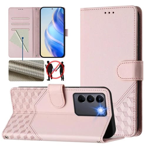 Funda de Cuero Rfid con Relieve de Panal Global para Vivo V27 5G/V27 Pro 5G (Rosa)