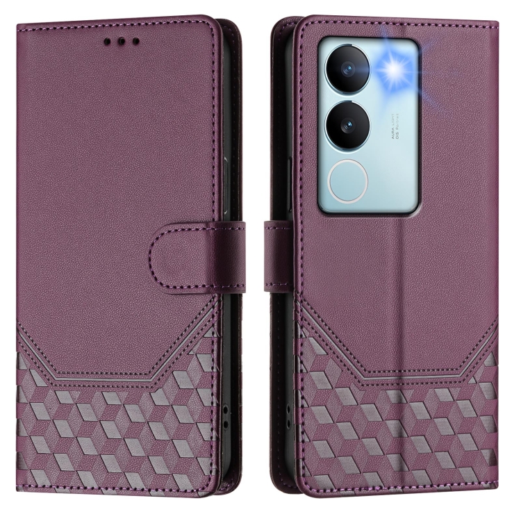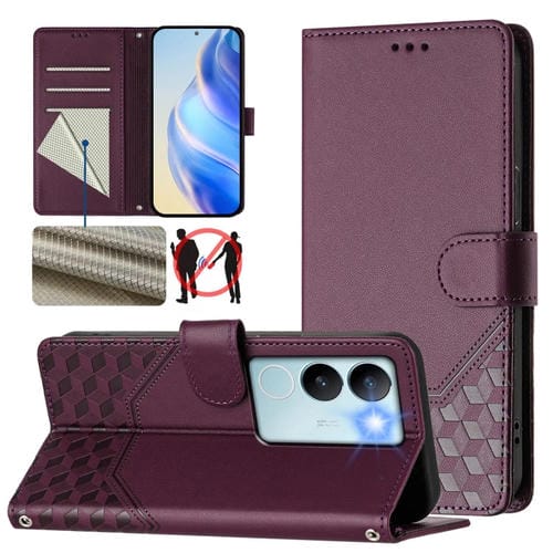 Funda de Cuero Rfid con Relieve de Panal Global para Vivo V29 5G/V29 Pro (Violeta)