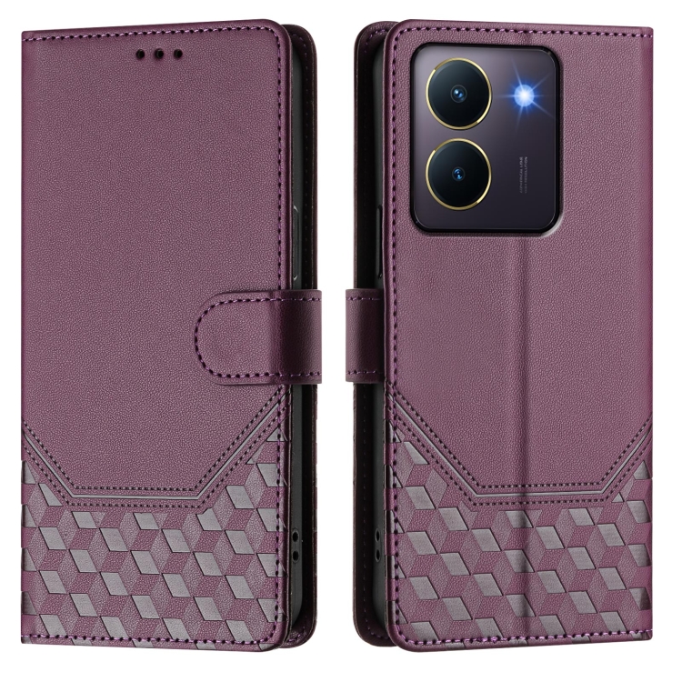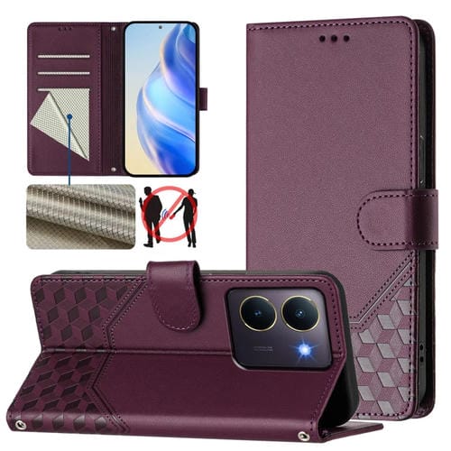 Funda de Cuero Rfid con Relieve de Panal Global para Vivo Y36 5G/4G/Y27S 4G (Violeta)