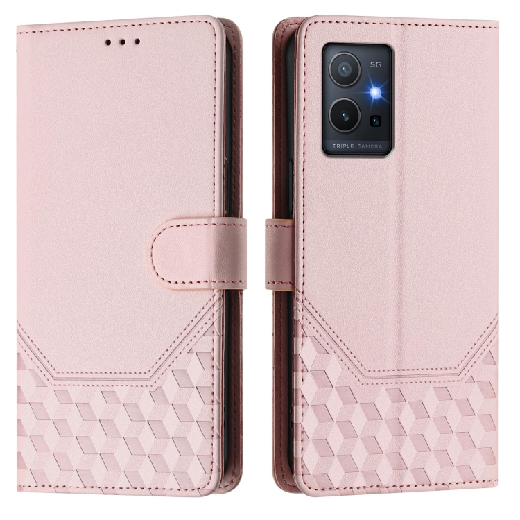 Funda de Cuero Rfid con Relieve de Panal Global para Vivo Y55S 2023/Y75 5G (Rosa)