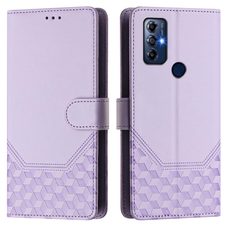 Funda de Cuero Rfid con Relieve de Panal para Motorola Moto G Play 2022 (Morado Claro)