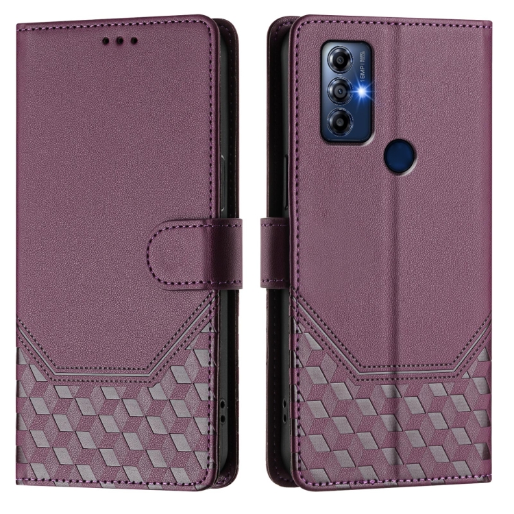 Funda de Cuero Rfid con Relieve de Panal para Motorola Moto G Play 2022 (Violeta)