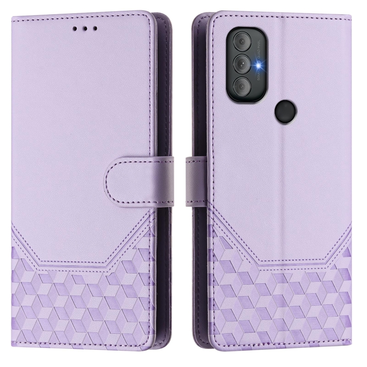 Funda de Cuero Rfid con Relieve de Panal para Motorola Moto G Power 2022 (Morado Claro)