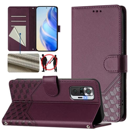Funda de Cuero Rfid con Relieve de Panal para Redmi Note 10 Pro 4G/Note 10 Pro Max (Violeta)
