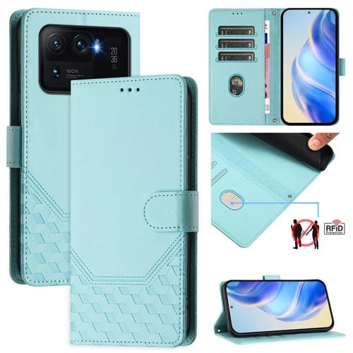 Funda de Cuero Rfid con Relieve de Panal para Xiaomi Mi 11 Ultra (Verde Menta)