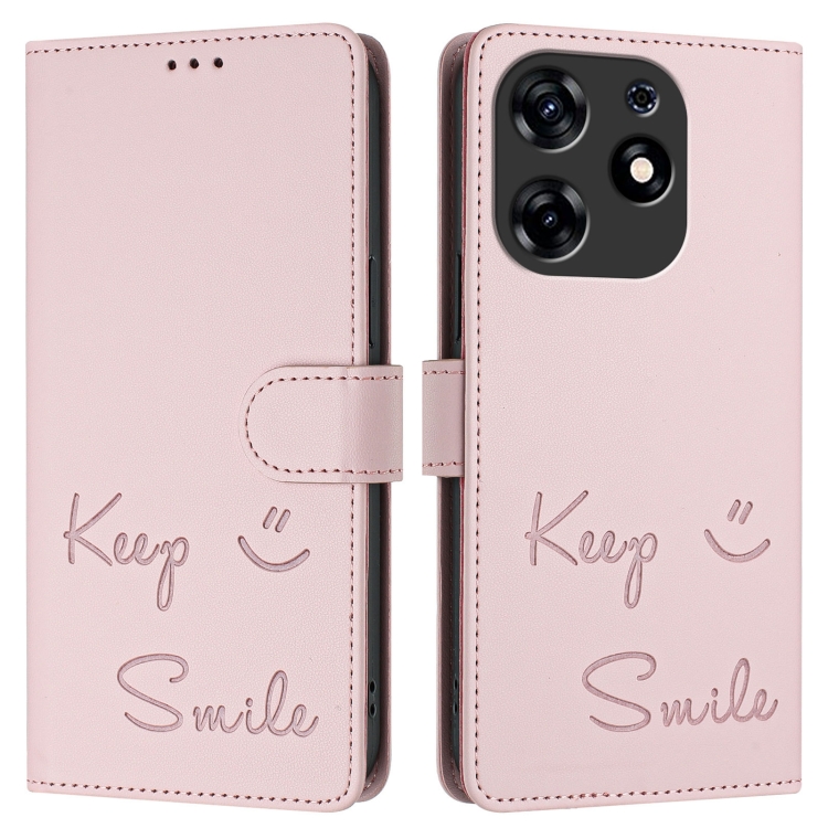 Funda de Cuero Rfid con Relieve de Sonrisa para Tecno Spark 10 Pro (Magenta)