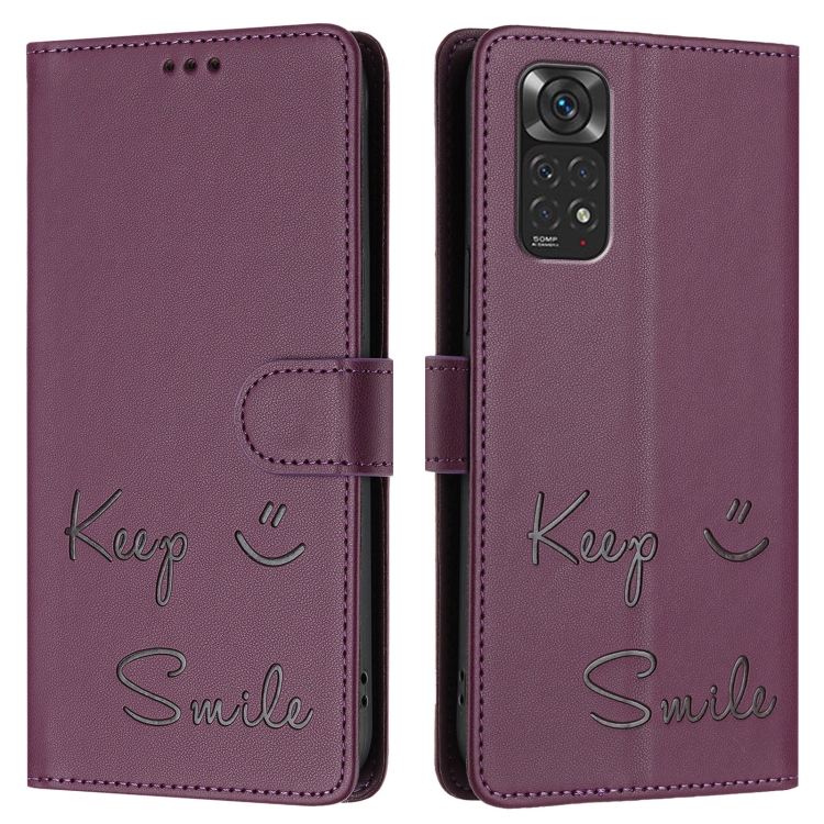 Funda de Cuero Rfid con Relieve de Sonrisa Global para Redmi Note 11S/Note 11 (Violeta)
