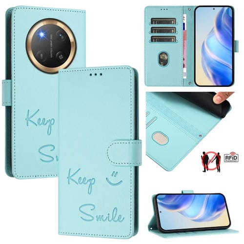 Funda de Cuero Rfid para Honor X9C 5G con Relieve Sonrisa Global (Verde Menta)