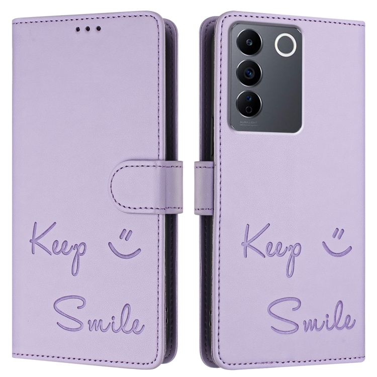 Funda de Cuero Rfid con Relieve de Sonrisa Global para Vivo T2 4G (Morado Claro)