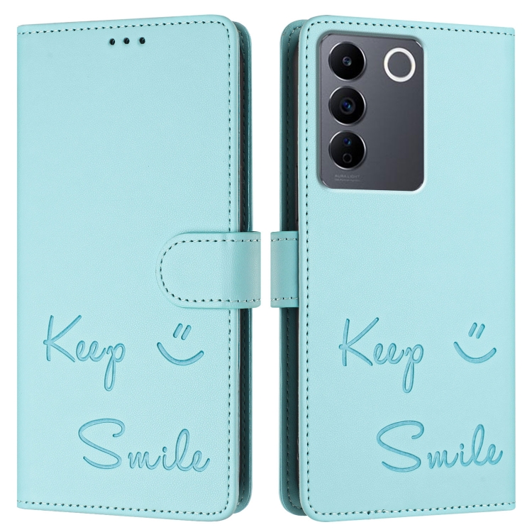 Funda de Cuero Rfid con Relieve de Sonrisa Global para Vivo V27 5G (Verde Menta)