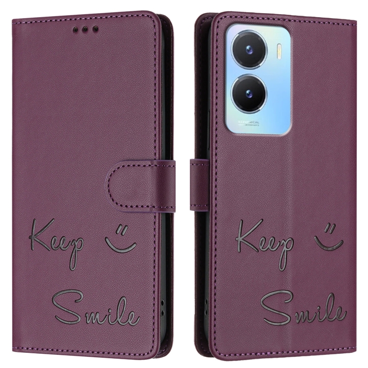 Funda de Cuero Rfid con Relieve de Sonrisa Global para Vivo Y02S 4G (Violeta)