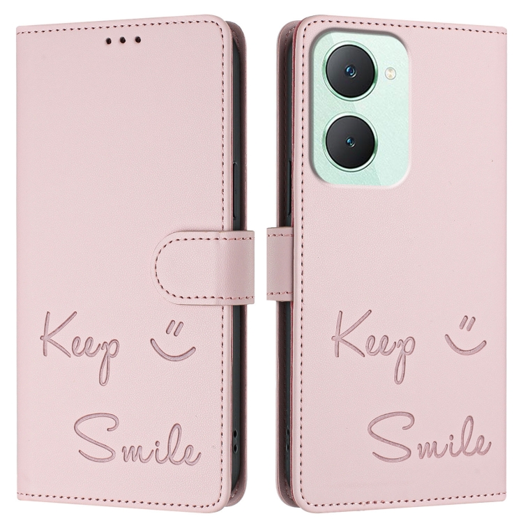 Funda de Cuero Rfid con Relieve de Sonrisa Global para Vivo Y03 4G (Rosa)