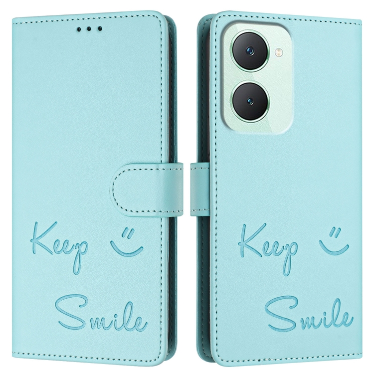 Funda de Cuero Rfid con Relieve de Sonrisa Global para Vivo Y03 4G (Verde Menta)