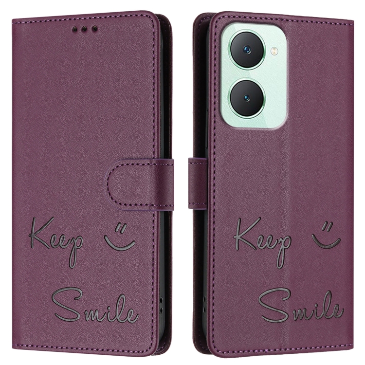 Funda de Cuero Rfid con Relieve de Sonrisa Global para Vivo Y03 4G (Violeta)