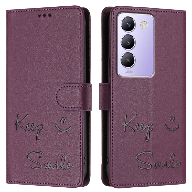 Funda de Cuero Rfid con Relieve de Sonrisa Global para Vivo Y200E 5G (Violeta)