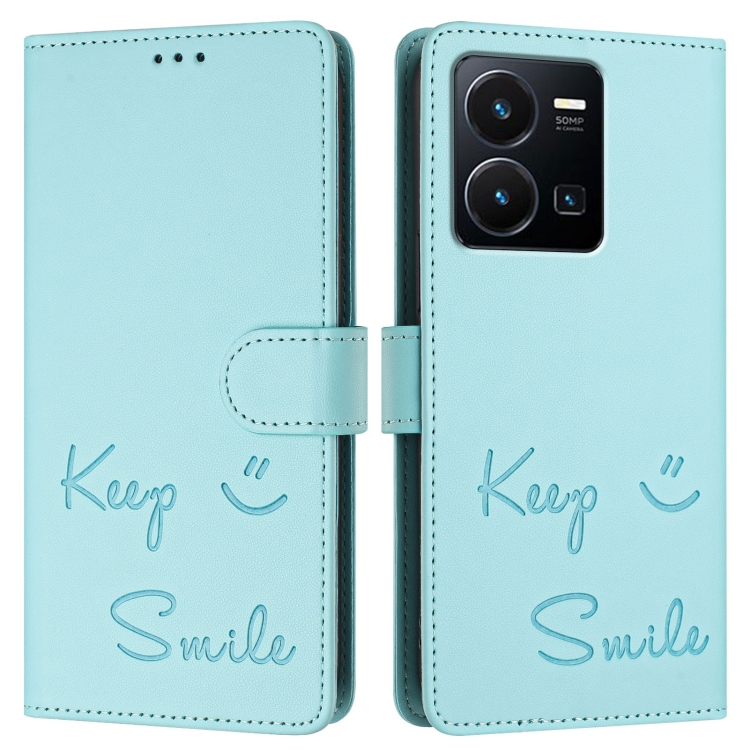 Funda de Cuero Rfid con Relieve de Sonrisa Global para Vivo Y22 4G (Verde Menta)