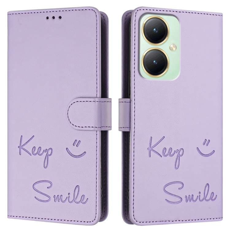 Funda de Cuero Rfid con Relieve de Sonrisa Global para Vivo Y27 4G 2023 (Morado Claro)