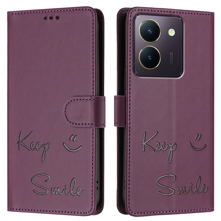 Funda de Cuero Rfid con Relieve de Sonrisa Global para Vivo Y36 5G (Violeta)