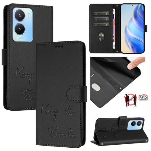 Funda de Cuero Rfid con Relieve de Sonrisa Global para Vivo Y56 5G (Negra)