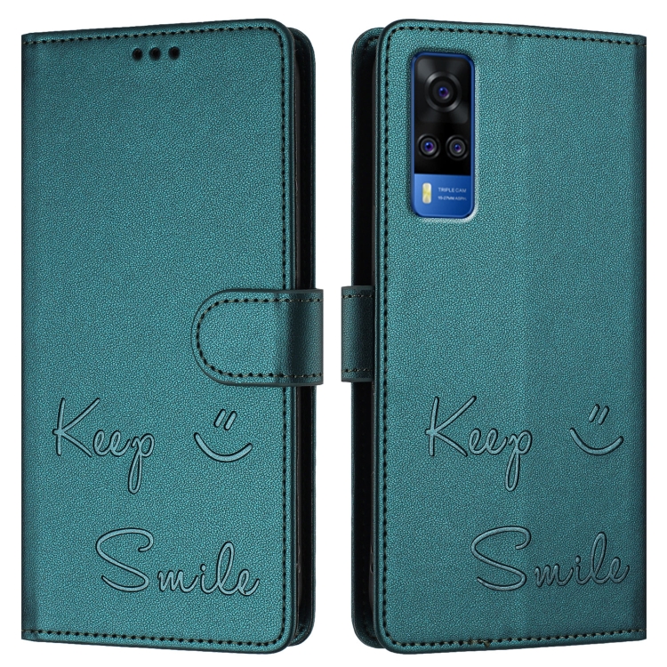 Funda de Cuero Rfid con Relieve de Sonrisa India para Vivo Y31 4G 2021 (Verde Pavo Real)