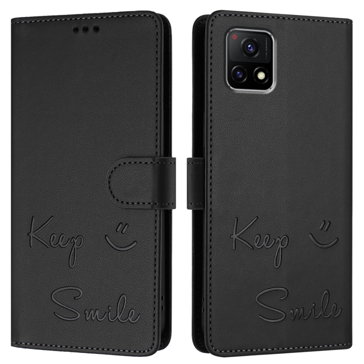 Funda de Cuero Rfid con Relieve de Sonrisa India para Vivo Y31S 5G/Y72 5G (Negra)