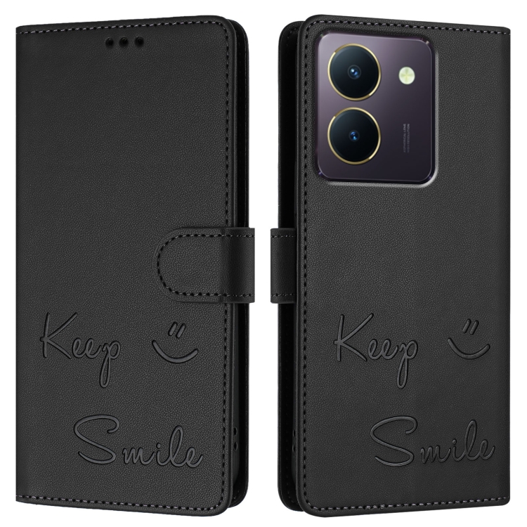 Funda de Cuero Rfid con Relieve de Sonrisa India para Vivo Y36 4G (Negra)