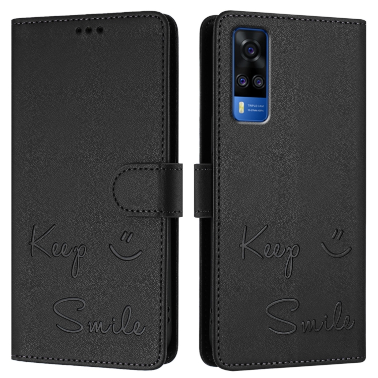 Funda de Cuero Rfid con Relieve de Sonrisa para Vivo Y53S 4G / Y51A 2021 (Negra)