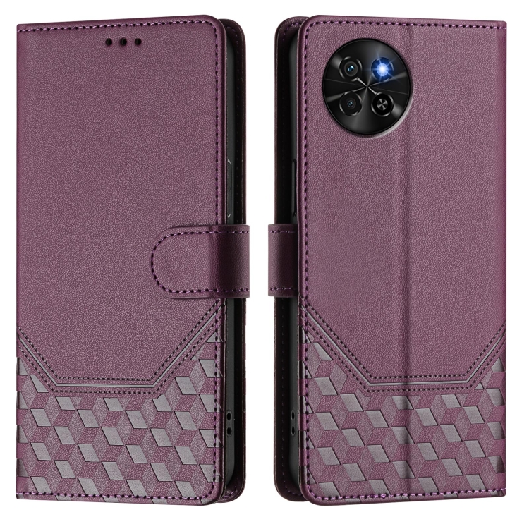 Funda de Cuero RFID para Teléfono Itel S23 S665L con Relieve Panal (Violeta)