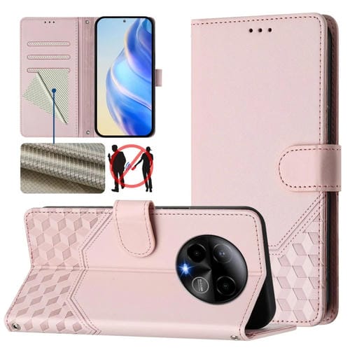 Funda de Cuero RFID con Relieve en Panal para Blu Bold K50 (Rosa)