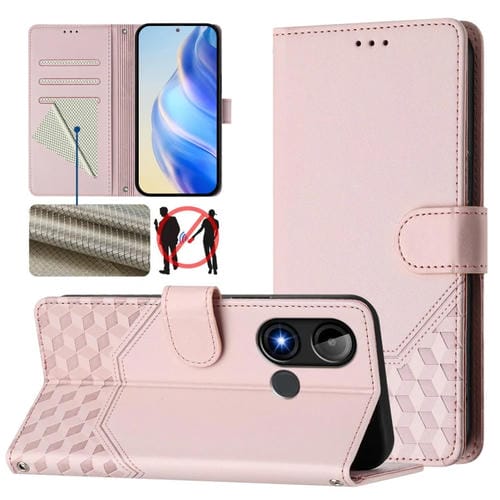 Funda de Cuero RFID con Relieve en Panal para Blu C9 (Rosa)