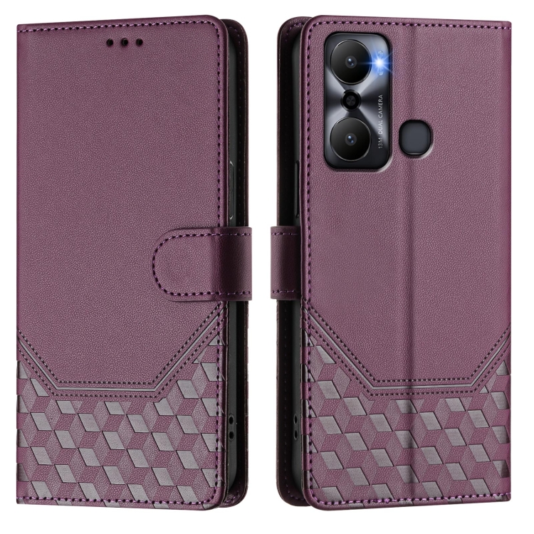 Funda de Cuero Rfid con Relieve en Panal para Infinix Hot 20 Play (Violeta)