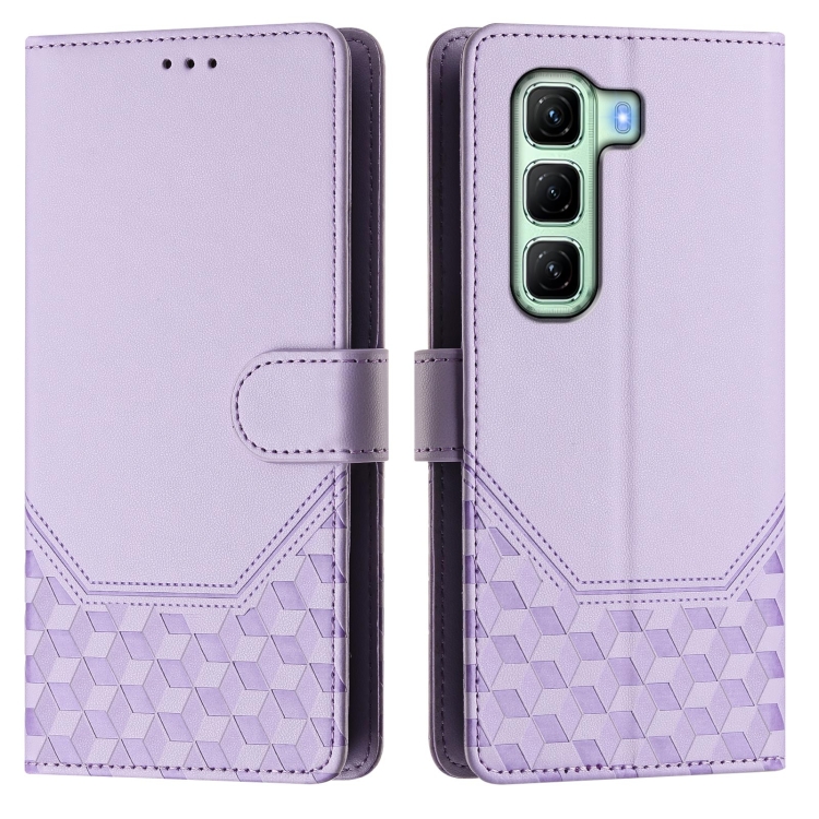 Funda de Cuero Rfid con Relieve en Panal para Infinix Hot 50 5G (Morado Claro)