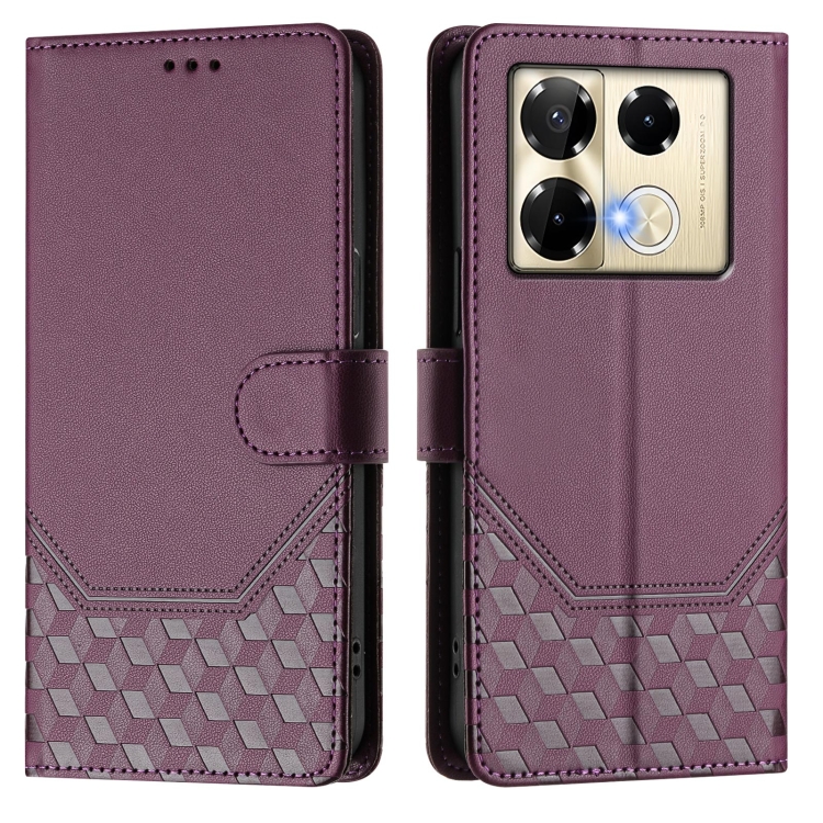 Funda de Cuero Rfid con Relieve en Panal para Infinix Note 40 Pro+ 5G (Violeta)