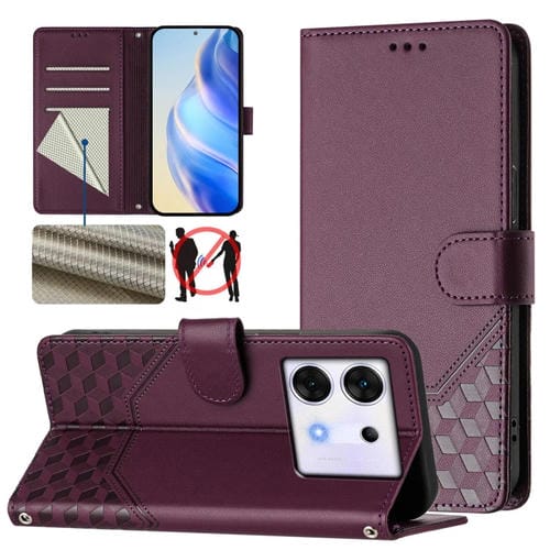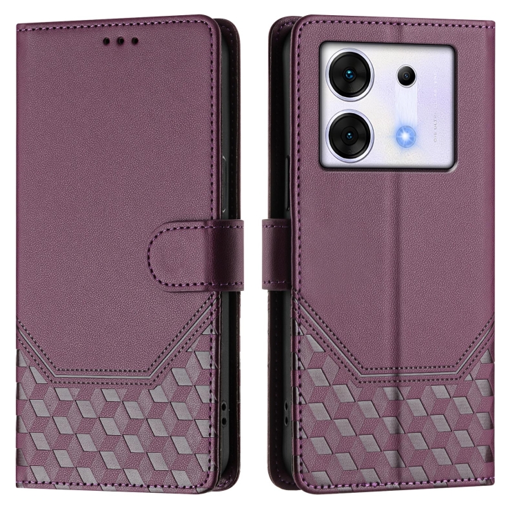 Funda de Cuero Rfid con Relieve en Panal para Infinix Zero 30 5G (Violeta)
