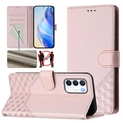 Funda de Cuero RFID con Relieve en Panal para Infinix Zero 5G 2023 (Rosa)
