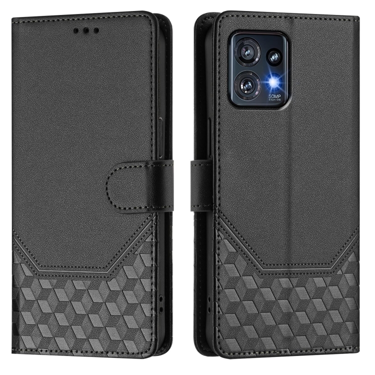 Funda de Cuero Rfid con Relieve en Panal para Motorola Edge+ 2023/40 Pro (Negra)