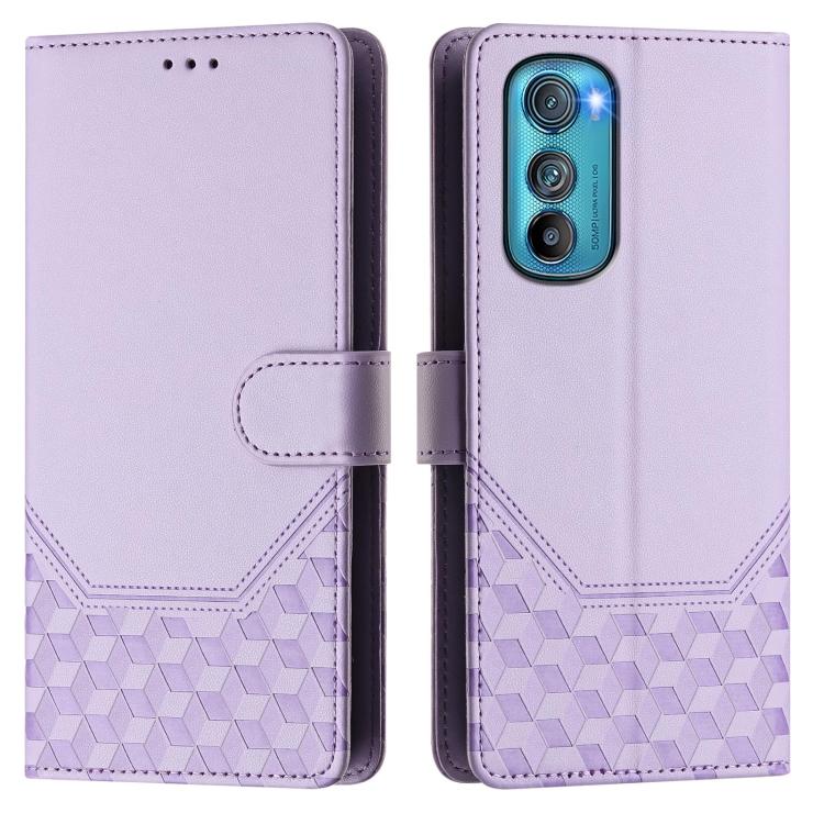 Funda de Cuero Rfid con Relieve en Panal para Motorola Edge 30 (Morado Claro)