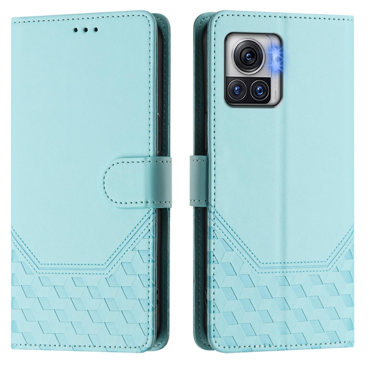Funda de Cuero Rfid con Relieve en Panal para Motorola Edge 30 Ultra/Moto X30 Pro (Verde Menta)