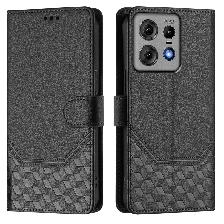Funda de Cuero Rfid con Relieve en Panal para Motorola Edge 50 Pro (Negra)
