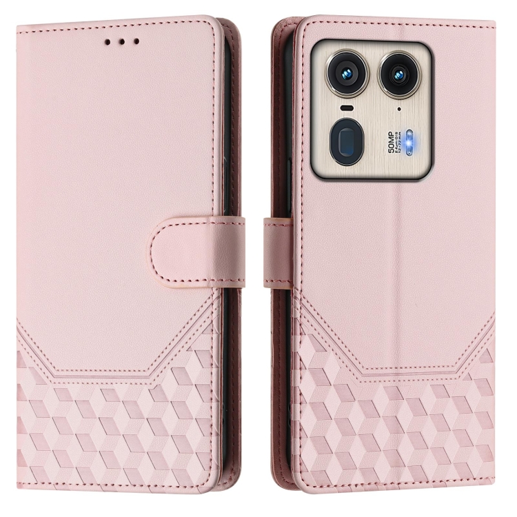 Funda de Cuero Rfid con Relieve en Panal para Motorola Edge 50 Ultra/X50 Ultra (Rosa)